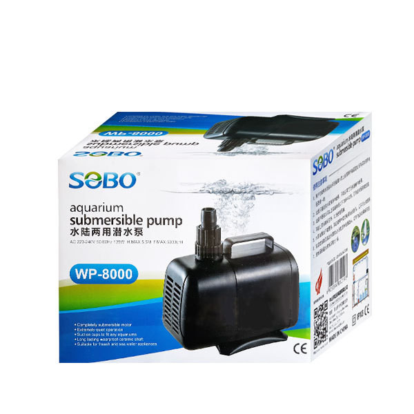 توان گردش آب SOBO Water Pump WP-8000 حدود 5000 لیتر در ساعت بوده و موتوری به قدرت 120 وات دارد. این محصول برند سوبو کارکردی کاملا بی صدا و بدون لرزش دارد.