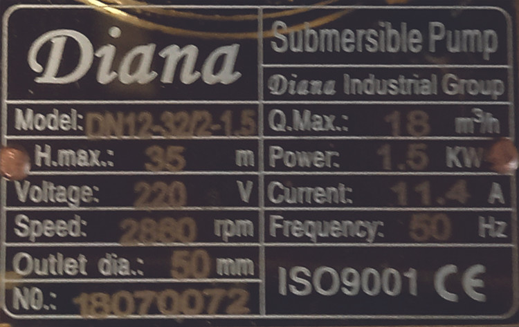 کفکش 35 متری پروانه استیل 2 اینچی دیانا یکی از انواع پمپ کفکش های DIANA ساخت کشور چین است که دارای بدنه چدنی مقاوم در برابر خوردگی و زنگ زدگی می باشد. این پمپ به دلیل سایز کوچک مناسب نصب در چاه های باریک است. مدل DN12-32/2-1.5 دارای پروانه استیل می باشد.